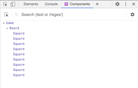 کامپوننت Square یک <button> رندر میکند و هر کامپوننت Board، نُه Square را رندر میکند. کامپوننت Game هم یک Board به همراه مقادیر اولیه که بعدا آنها را تغییر میدهیم رندر میکند. فعلا در این کد هیچ کامپوننت تعاملی و فعالی وجود ندارد.